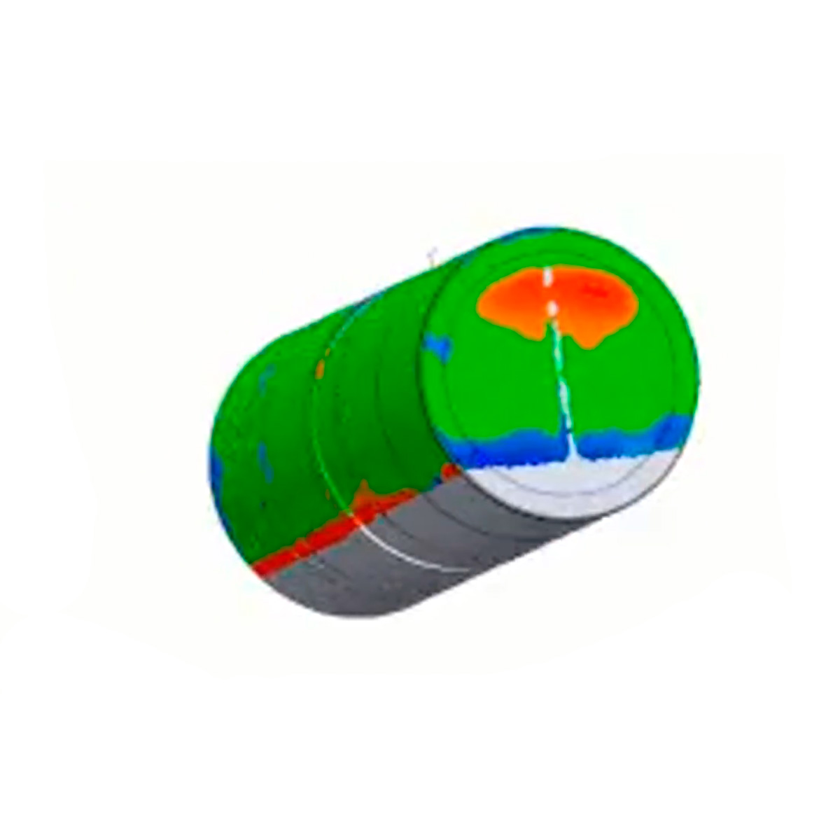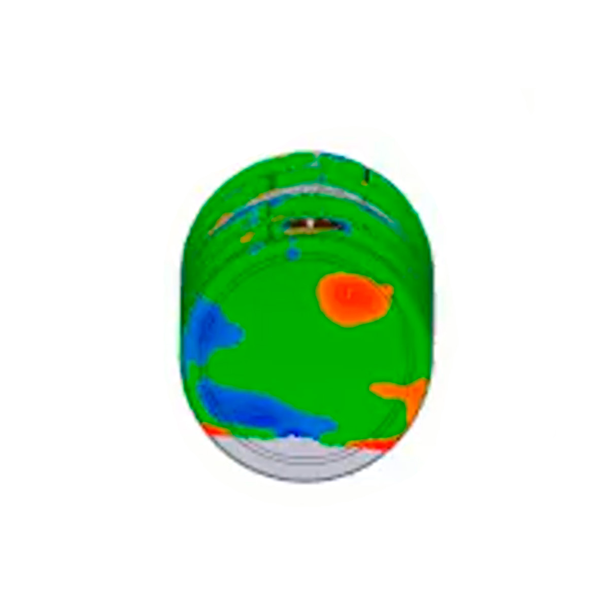 The result is usually shown as a color-coded heatmap, where deviations from the design are displayed in different colors based on tolerance thresholds (e.g., green = within tolerance, red/blue = out of tolerance).